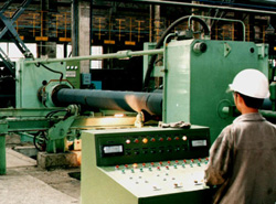 ●工藝簡要:精選的鐵礦石經過高爐冶煉,制備出球墨鑄鐵管生產所必需的鐵水。泫氏鑄管采用高爐-中頻爐短流程連鑄工藝、高爐廢氣再利用(球管退火)、節省二次化鐵的能耗、降低了生產成本、保證生產節奏的連續。